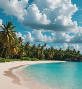 4K Vibrant Turquoise Waters and White Sand Palms: Your Peaceful Tropical Escape