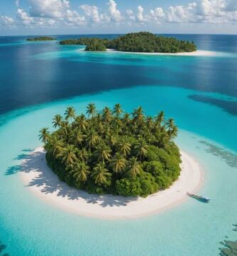Serene 4K Tropical Island Paradise with Lush Palms and Turquoise Waters
