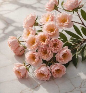 Dreamy Elegance: Pink Glass Cherries on Marble with Pastel Reflections