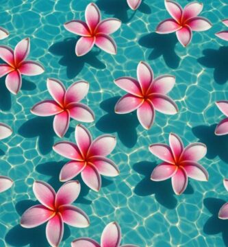 4K Beach Sunset Serenity with Plumeria Flowers and Palm Tree Silhouettes