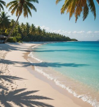 4K Beach Tropical Paradise with White Sand, Palm Trees, and Tranquil Turquoise Water