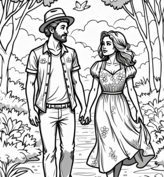 Free Printable Coloring Pages of an Elegant Woman in a Floral Garden Scene