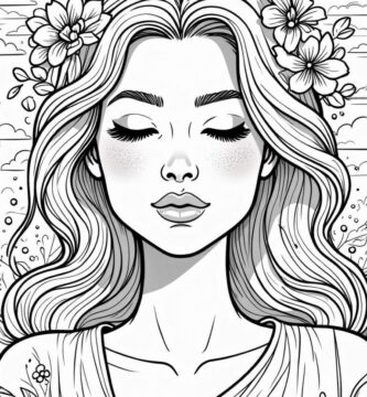 Free Printable Coloring Pages of Serene Woman’s Face with Floral Elements
