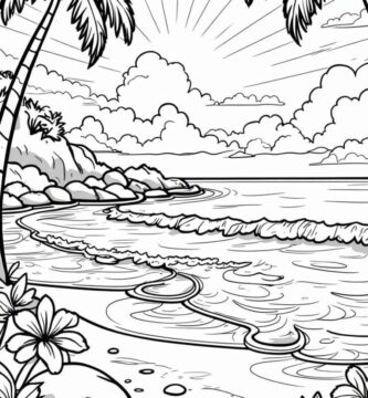 Free Printable Coloring Pages of a Vibrant Beach Scene PDF