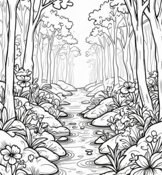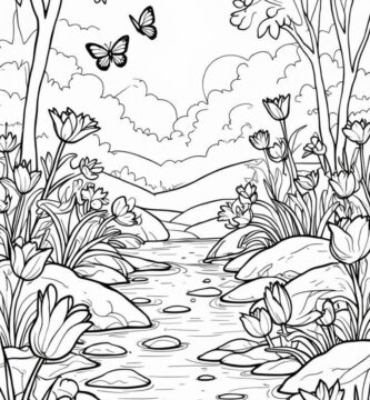 Free Printable Coloring Pages of a Serene Garden Scene for Relaxation