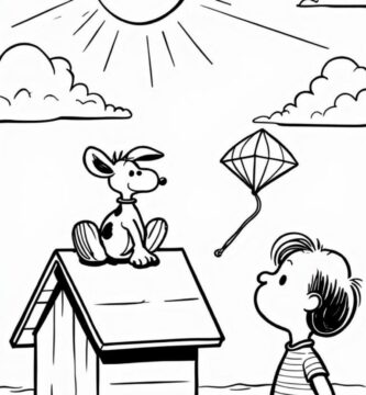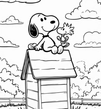 Free Printable Coloring Pages of Snoopy’s Playful Sky Scene