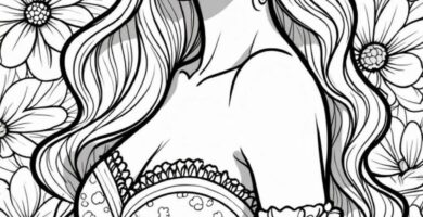 Free Printable Coloring Pages of an Elegant Woman Surrounded by Floral Patterns