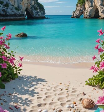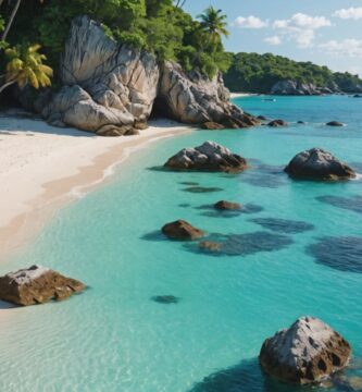 4K Beach Serene Tropical Escape with Turquoise Water and Lush Greenery Beauty