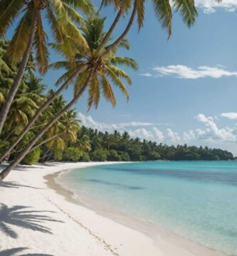 4K Beach Paradise: Turquoise Waters, White Sand & Serene Palm Shade Lounging