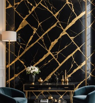 Dramatic Elegance: Marble Swirls of Black, White, and Gold