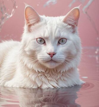 Dreamy Marble Water Reflections: A Serene Journey with an Orange Kitten