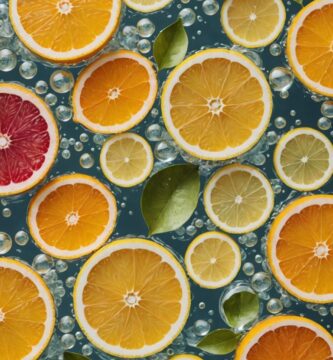 Summer Citrus Elegance: Floating Lemon and Orange Slices in Sparkling Bubbles
