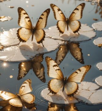 Ethereal Golden Butterflies Dancing Over Rippling Summer Water Dreams