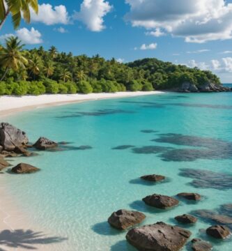 Serene 4K Tropical Island Paradise with Lush Palms and Turquoise Waters