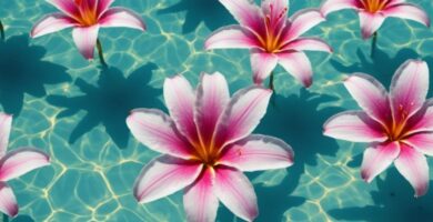 Two Pink White Plumeria Flowers Floating on Clear Water: A 4K Beach Serenity Experience