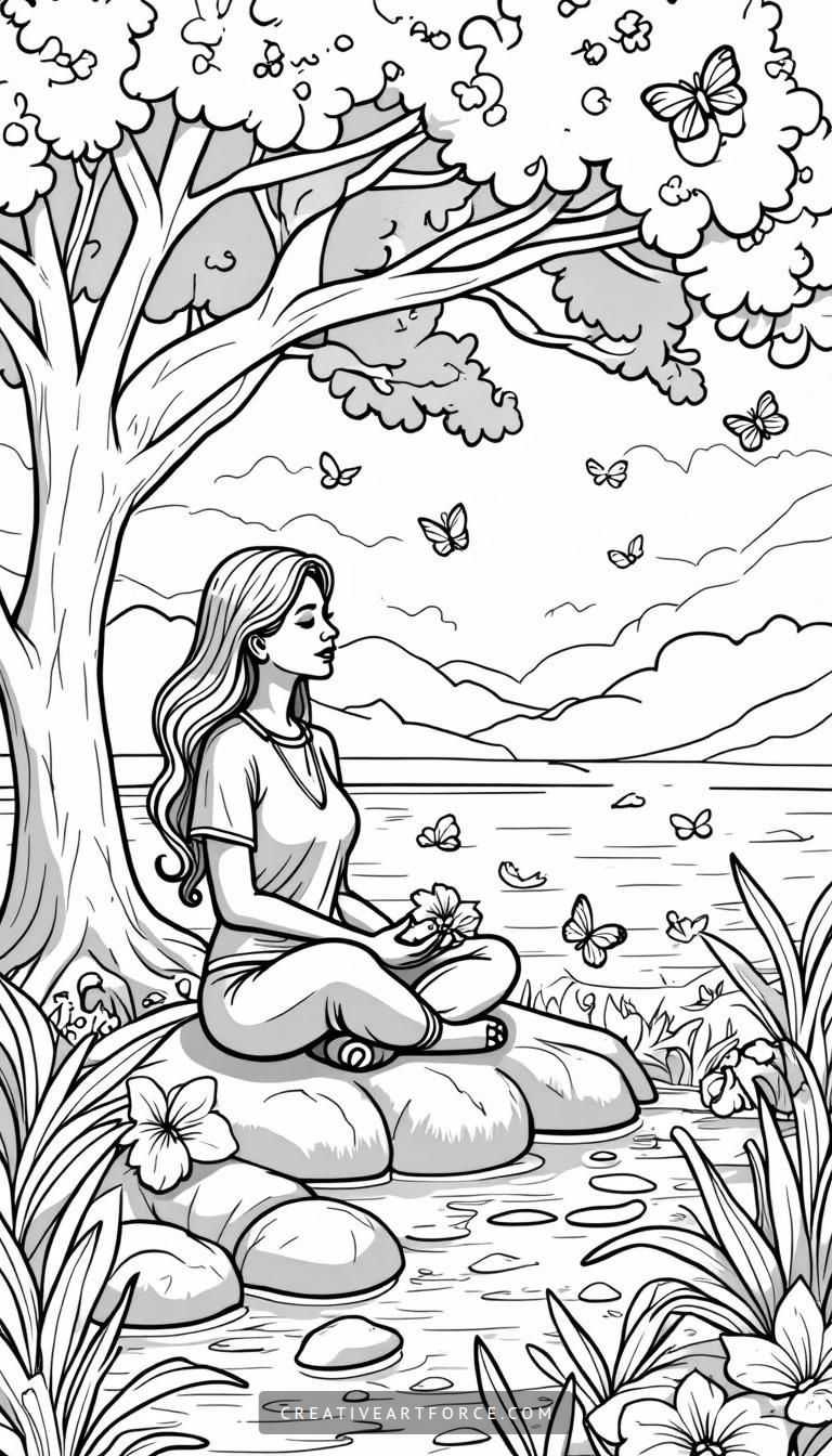 In a world bustling with noise and distractions, finding a few moments of calm can feel like an elusive dream. Fortunately, the art of coloring offers a unique escape, allowing you to express creativity while expressing your inner peace. Our free printable coloring pages featuring a serene landscape with a woman meditating under a majestic tree, surrounded by blooming flowers and gentle butterflies, are designed to not only soothe your mind but also inspire your artistic flair. Grab your pencils and let’s embark on a journey of relaxation and creativity!