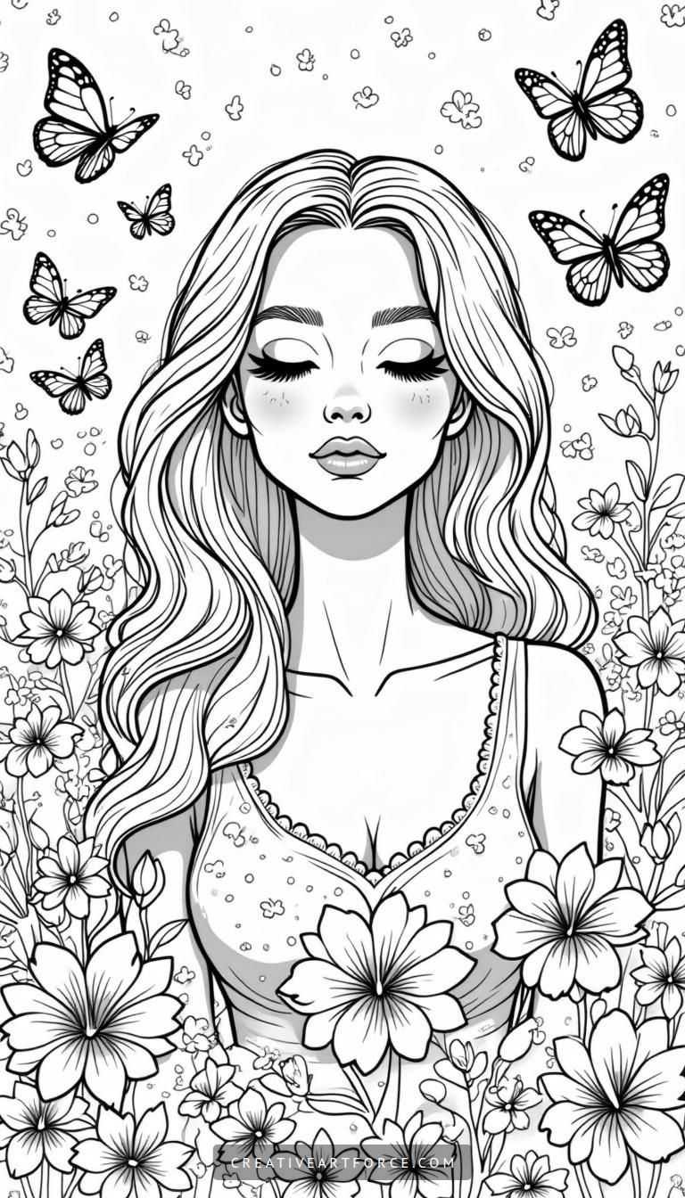 In a world that often feels overwhelming, finding a way to relax and de-stress is essential. One wonderful method that has gained immense popularity is coloring. This isn’t just child’s play; it’s a delightful way for adults to engage in creative expression while fostering mindfulness. Coloring pages for women can be particularly enchanting, capturing beauty, serenity, and intricate details. Our featured drawing showcases a serene woman surrounded by flowers and butterflies, inviting you into a calm and colorful world.
