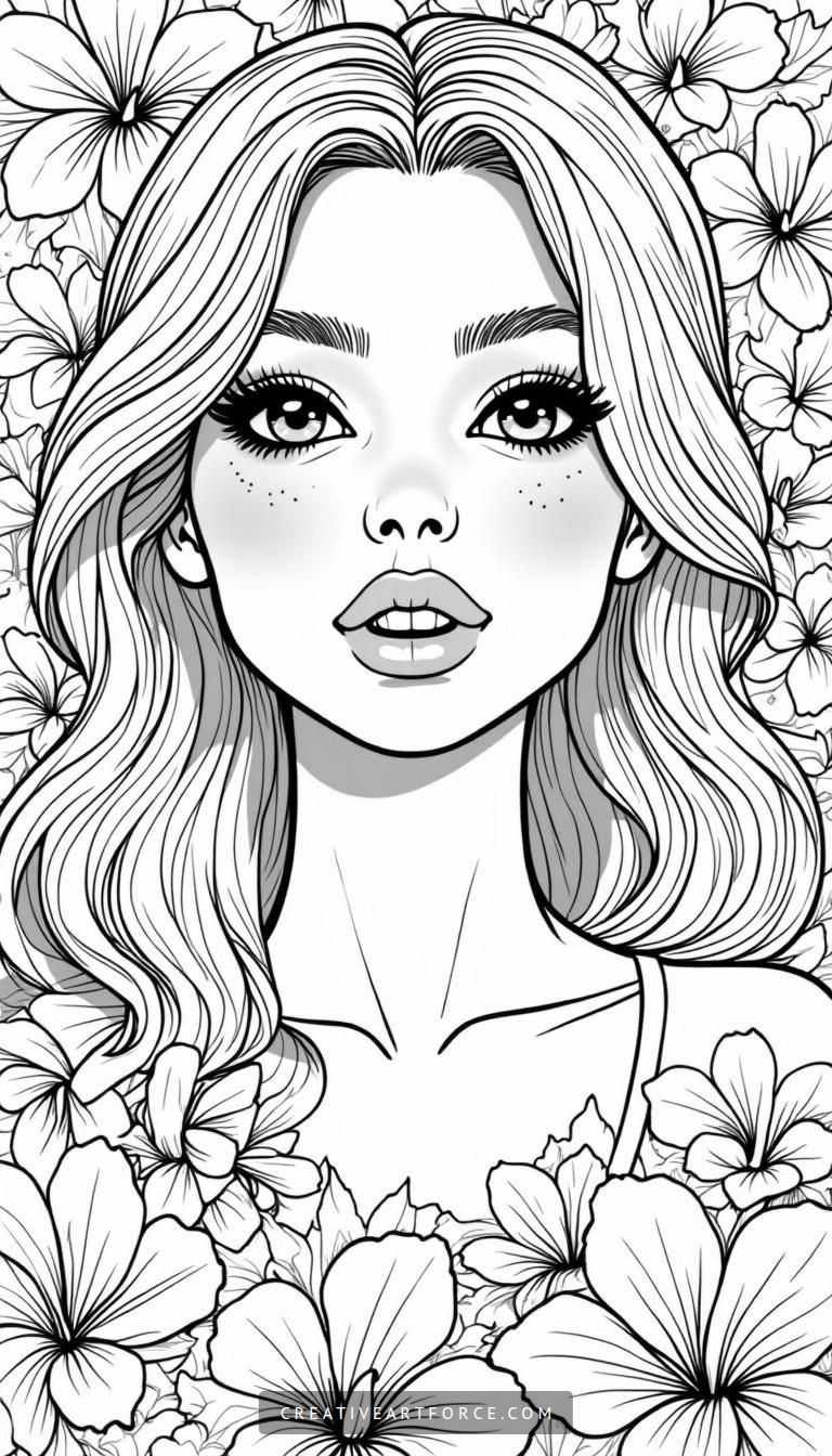 In the hustle and bustle of everyday life, we’ve all felt the need to step back and find a sense of peace. One wonderful way to achieve this tranquility is through the art of coloring. The act of coloring allows you to express your creativity while simultaneously engaging in a calming, meditative process. If you’re looking to unwind and enjoy a moment of serenity, diving into our collection of free printable coloring pages featuring a serene woman’s face, framed by flowing hair and surrounded by delicate floral elements, is just the ticket.