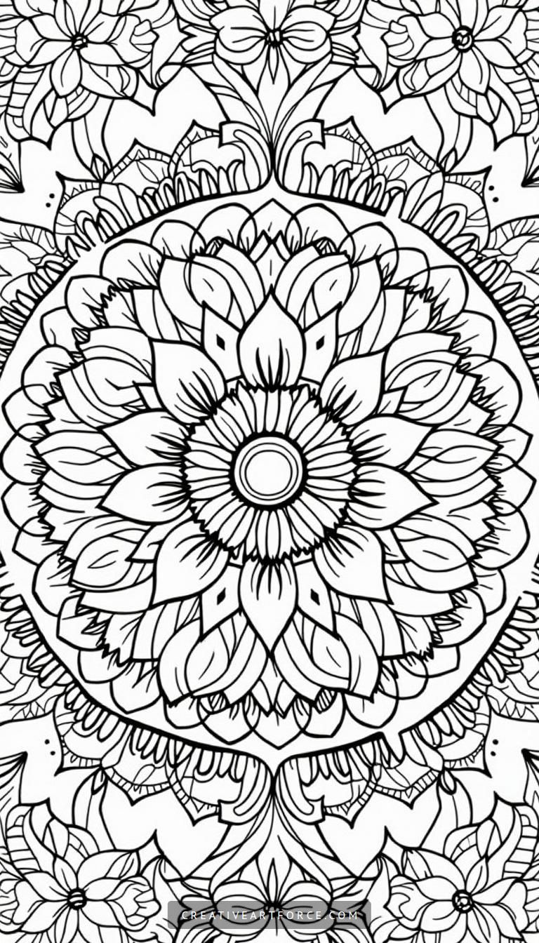 Remember, the goal of this artistic adventure is not achieving perfection but enjoying the journey. So, grab your coloring supplies and dive into your intricate mandala, letting the colors flow freely and the stress fade away.