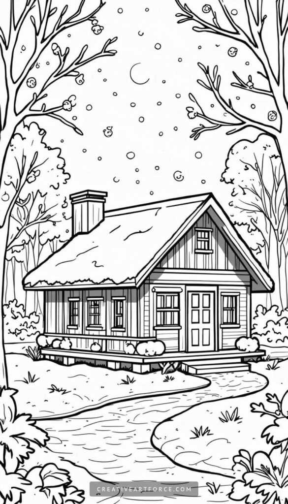 Imagine curling up in your favorite nook with a cup of hot cocoa while you bring these enchanting scenes to life. The act of coloring isn’t just a childhood pastime; it is a beloved activity among adults that can reduce stress and enhance mindfulness. Undoubtedly, these cozy winter cabin coloring pages are the ideal backdrop to channel your holiday spirit and await the arrival of the new year with joy and tranquility.