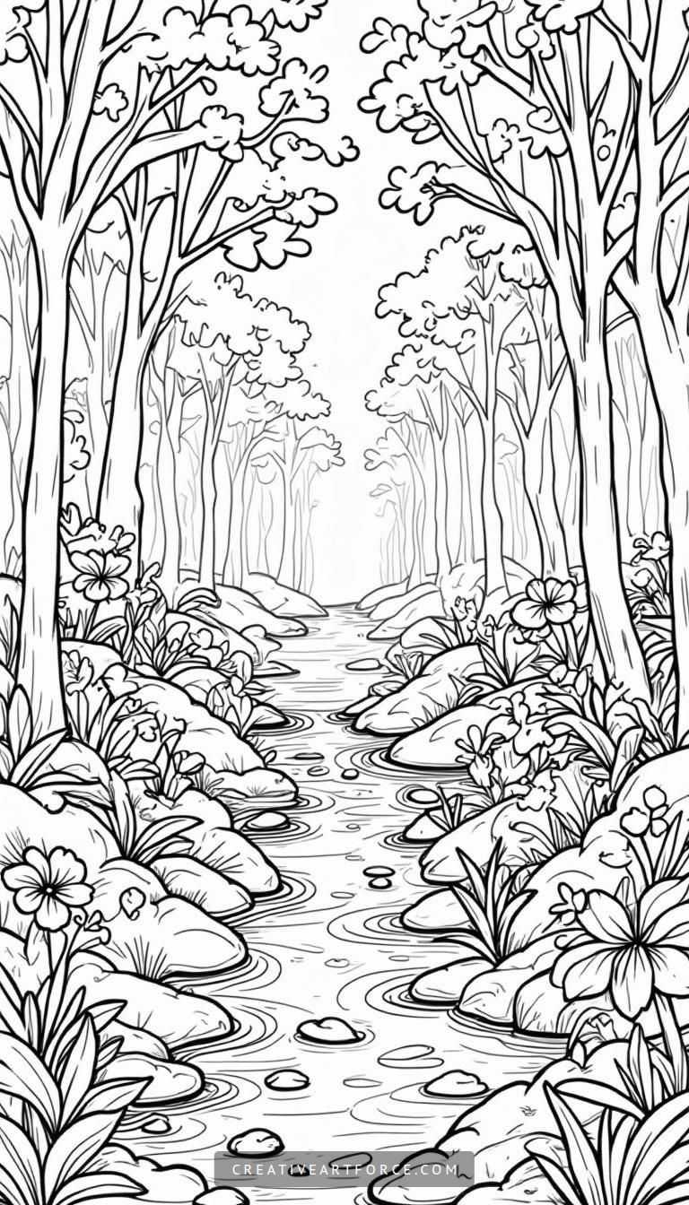 So, are you ready to print out the tranquil forest scene and start your creative adventure? From calming colors to intricate designs, let your imagination flourish as you fill each element with shades that reflect your personal journey in art. Happy coloring!