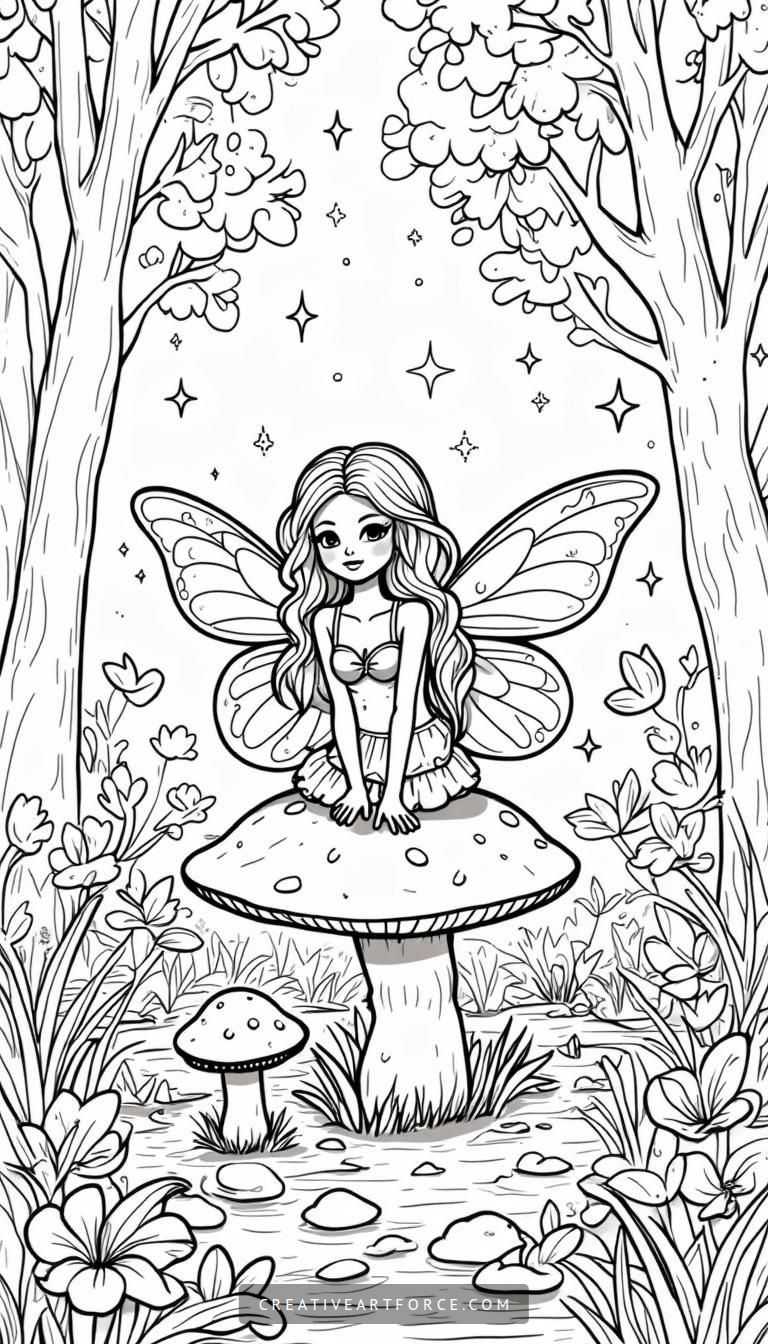 Step into a world where fantasy intertwines with nature, and creativity knows no bounds. Have you ever dreamed of breathing life into a serene forest scene that features a graceful fairy nestled on a lush mushroom, surrounded by delightful flowers and shimmering stars? If so, you’re in for a treat! Free printable coloring pages of whimsical forest fairy scenes are not only a therapeutic retreat for the mind but also an invitation to create magic with your coloring tools.