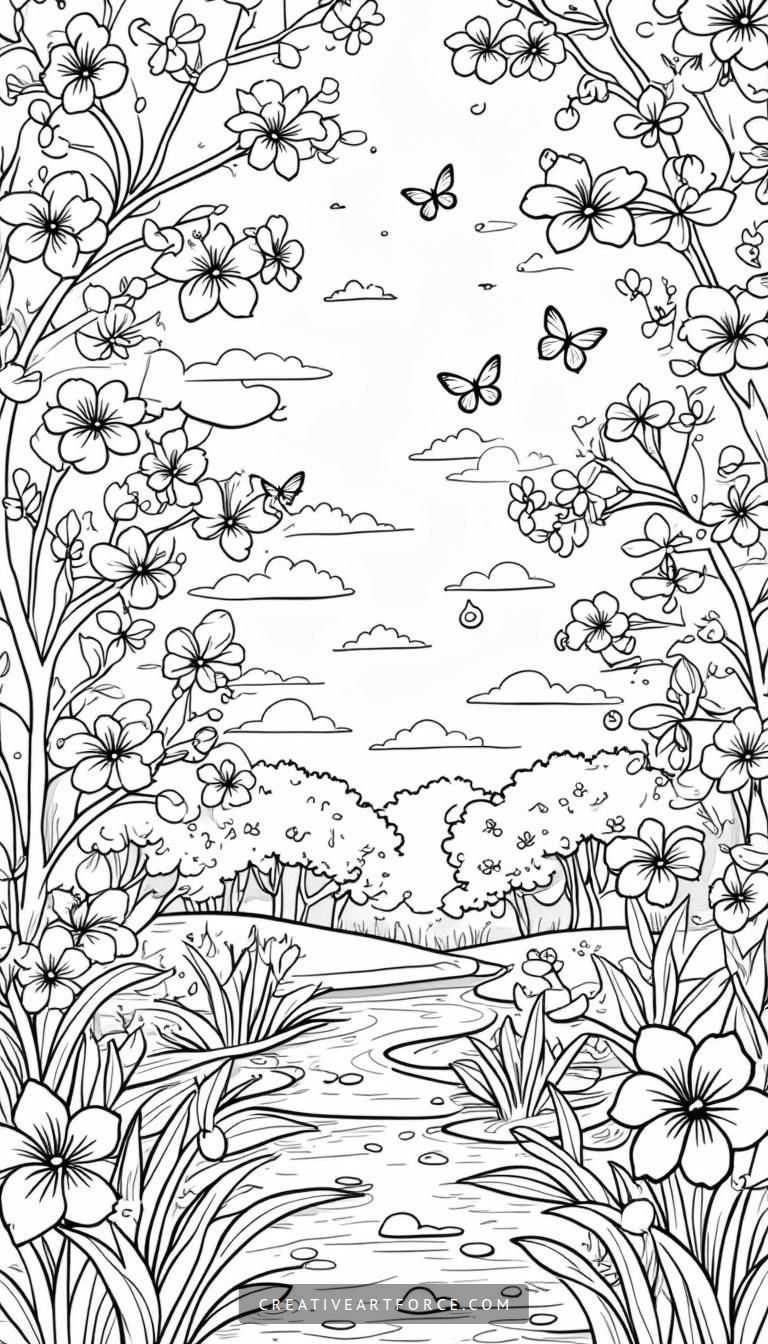 Spring is a season that evokes a sense of renewal and positivity. Color is everywhere, from grass turning lush green to flowers bursting into bloom. However, the beauty of spring doesn’t just exist outdoors; it can also be captured through art! Coloring pages depicting spring landscapes, especially those filled with cherry blossoms, butterflies, and soft pastels, provide a unique outlet to engage with the beauty of spring.