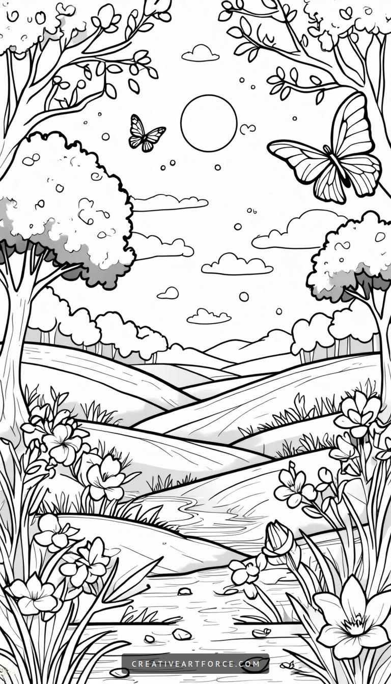 As the season of renewal arrives, there’s no better way to celebrate than by diving into the joyful world of spring through coloring pages. With blooming flowers, fluttering butterflies, and a radiant sun beaming down on lush green grass, our free printable coloring pages are a fantastic way to channel your creativity and promote relaxation. Color your own vibrant spring scene and watch as your artistic flair brings to life these illustrations filled with warmth and cheer.