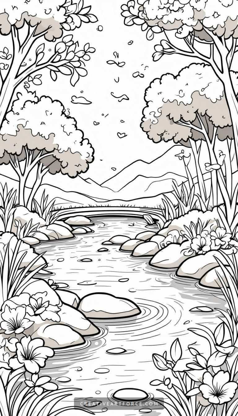 To help you get started, we’ve curated a delightful collection of free printable cute spring coloring pages, perfect for adults and even children! Each design features enchanting landscapes with a serene spring setting, where you can immerse yourself in the details of blooming flowers, lively birds, and a gentle river flowing through a beautiful scene.