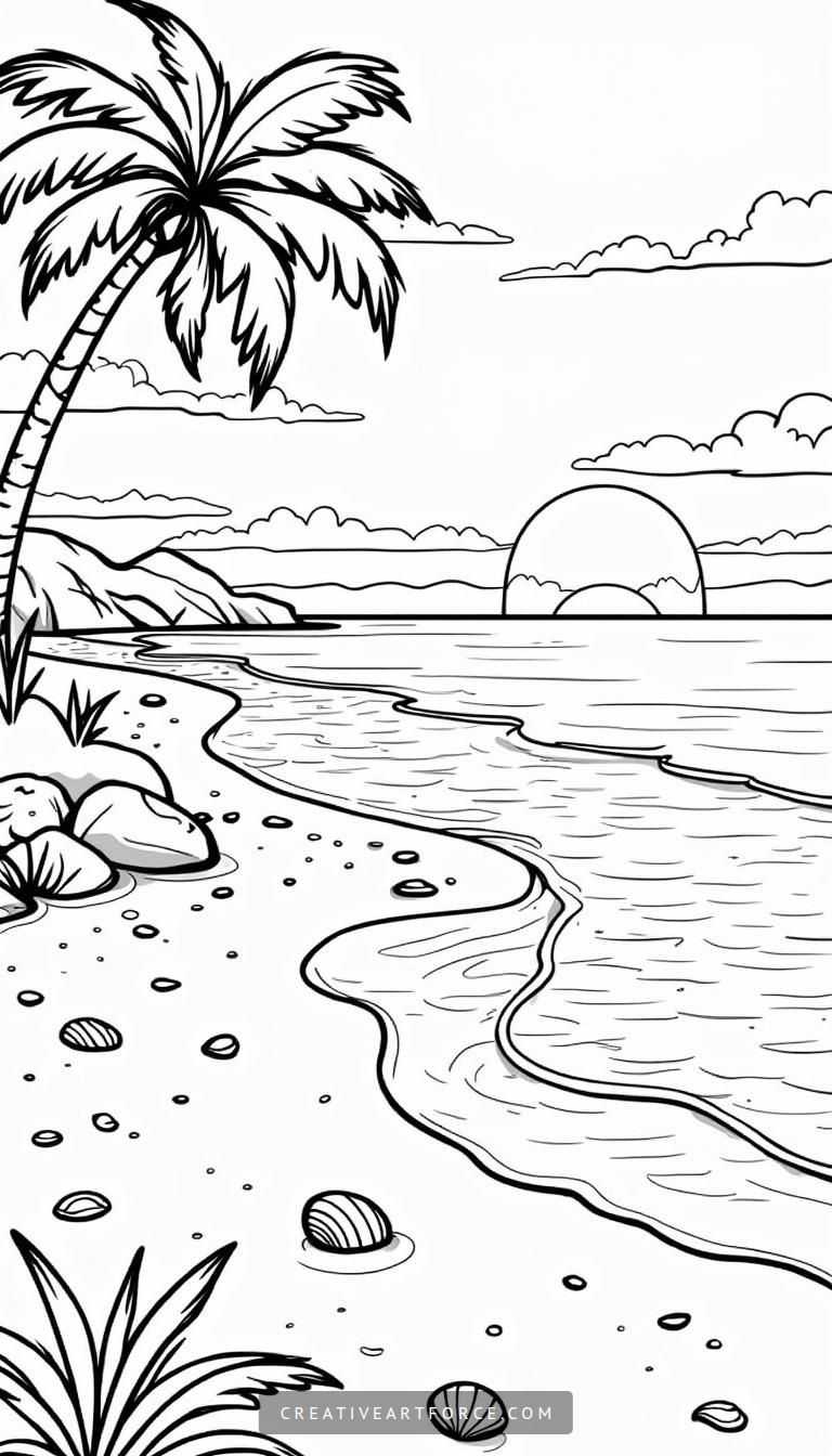 Once you have your favorite colors ready, it’s time to explore some fun coloring techniques that can enhance your beach landscape. Try layering colors to create depth in the sandy dunes, or experiment with blending techniques to give the water a realistic feel. For a more textured appearance in the palm trees, consider using short, flicking motions. You can even incorporate glitter or metallic pens to mimic the sun’s reflection on the water or the glowing seashells scattered on the shore. Embracing various coloring styles can add a unique twist to your artwork.