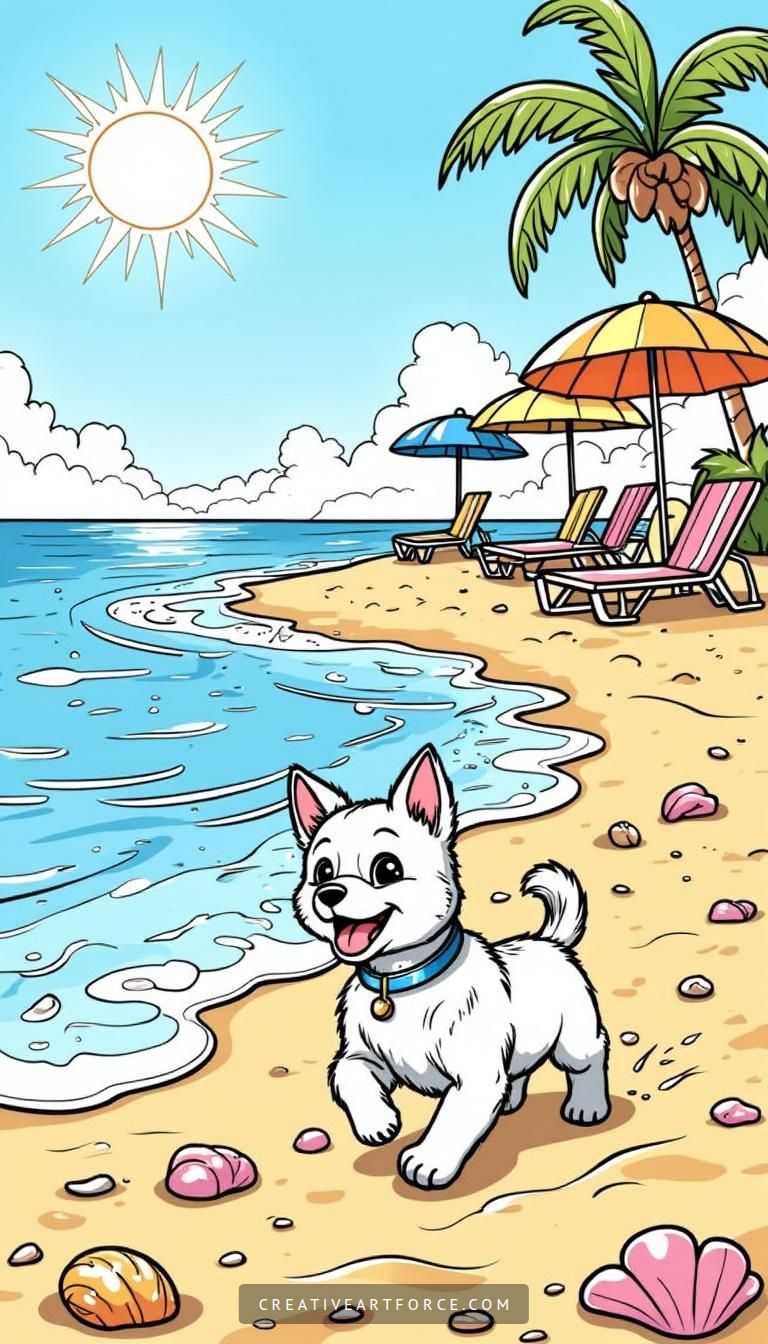 As the sun shines brighter and summer approaches, it’s time to from the comfort of your home. This playful and colorful beach scene coloring page is perfect for anyone looking to add a splash of creativity to their summer days. With a cute dog frolicking in the golden sand, colorful beach umbrellas, and gentle waves lapping at the shore, this printable page promises hours of relaxation and fun. Not only does coloring serve as a fantastic way to unwind, but it also sparks creativity and can even enhance your mood. Ready to dive in? Let’s get started on this artistic journey!