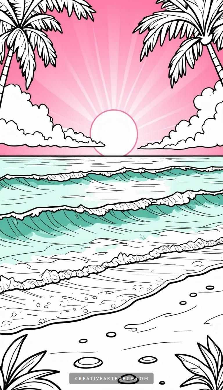 Are you ready to embrace the warmth of the sun and the soothing sounds of the ocean? If so, you’re in for a treat! We’re diving into the delightful world of coloring pages featuring a charming pink summer beach scene. Imagine a breathtaking sunset casting soft pink and peach tones across the sky, gentle waves lapping at a warm beige shore, and vibrant turquoise waters beckoning you for a dip. Grab your favorite colored pencils or markers, and let’s explore the joy of coloring with this exciting free printable collection!