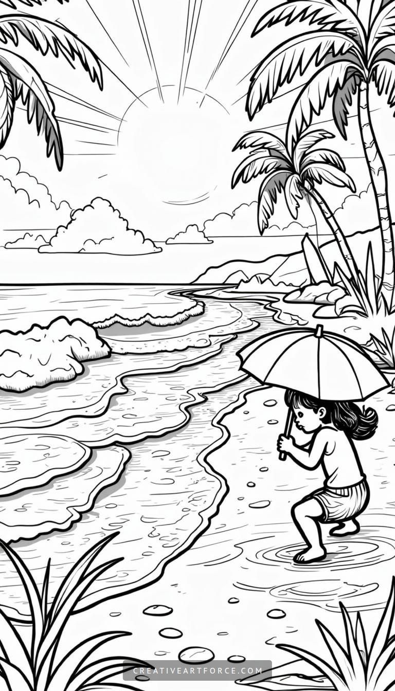 The appeal of summer beach scenes lies in their —whether you prefer relaxing under a palm tree or splashing in the waves, there’s something here for everyone. Imagine yourself surrounded by a cheerful scene, where children play and laughter fills the air. The best part? You can create your own version of this lively beach setting with your favorite coloring tools. Without further ado, let’s dive into the world of coloring pages and explore how you can infuse your creative touch into a quintessential summer day!