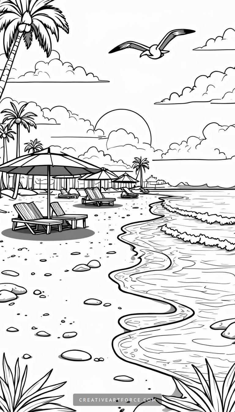 Free Printable Cute Coloring Pages Featuring a Vintage Beach Scene