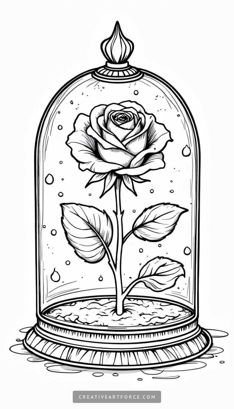 When coloring, focus on creating depth and contrast. You can achieve this by alternating shades in the glass dome and emphasizing its transparency, which can be tricky but rewarding. Using techniques such as shading, blending, and highlighting will allow the delicate rose to appear as if it’s both in bloom and suspended in time. Remember, this is your artistic expression, so don’t be afraid to experiment!