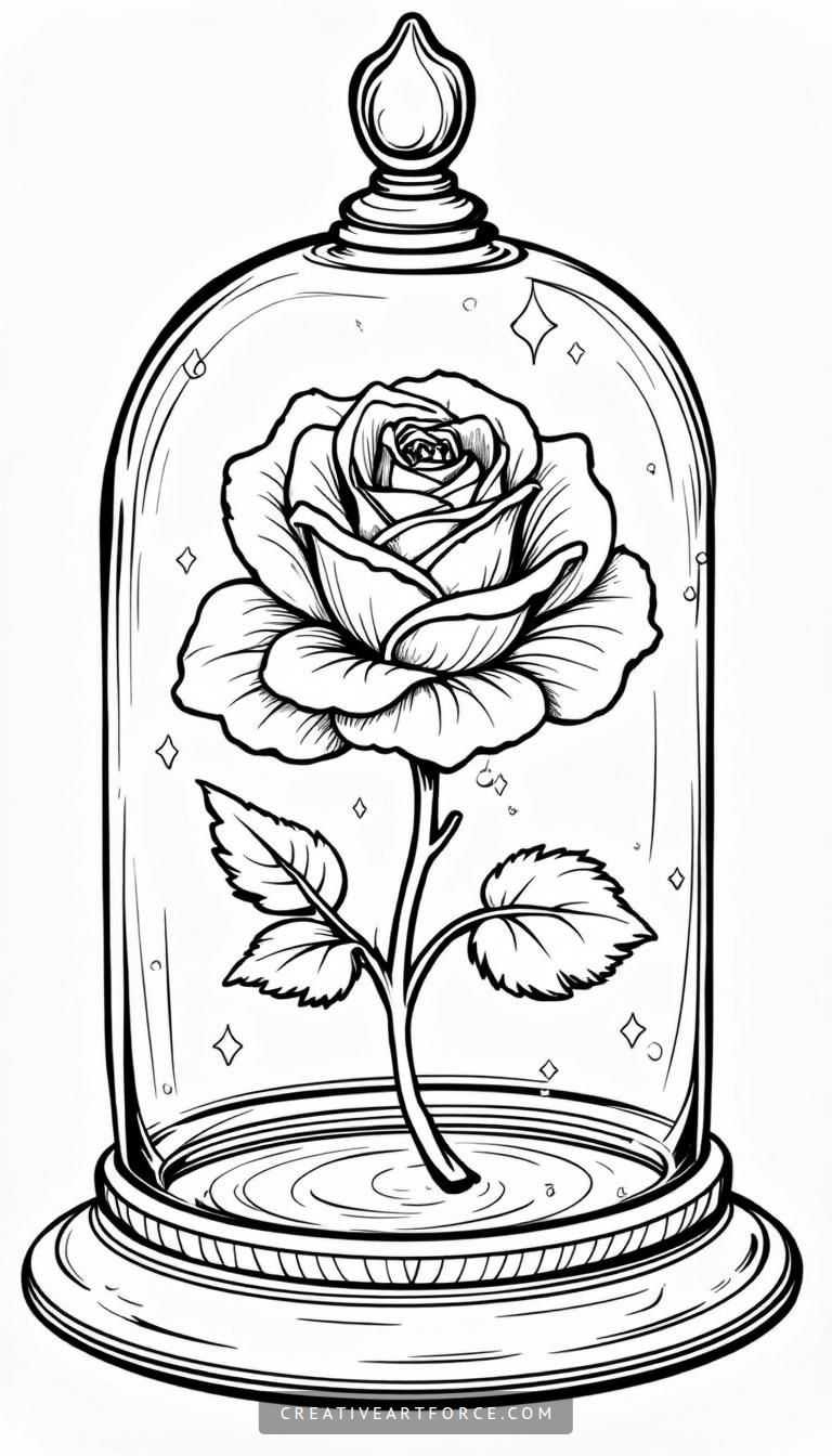 Free Printable Coloring Pages of a Beautiful Rose under a Glass Dome