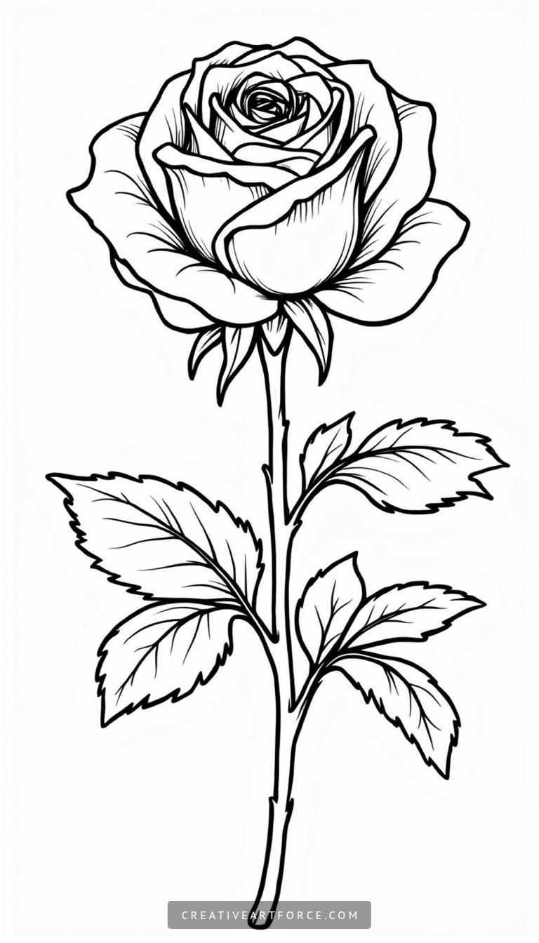 Free Printable Coloring Pages of a Cheerful Rose to Brighten Your Day