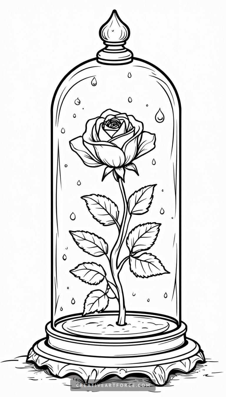 The rose encased in an elegant glass dome evokes imagery of fairy tales and a sense of wonder. For centuries, the rose has symbolized love and beauty across various cultures. In the story of Beauty and the Beast, the enchanted rose signifies the passage of time and the power of love. The and unique hues invite you to explore your artistic abilities and breathe life into your color choices. In your journey of coloring, remember to embrace the beauty of imperfections. Just as the rose itself, your artwork reflects your unique style and individuality.