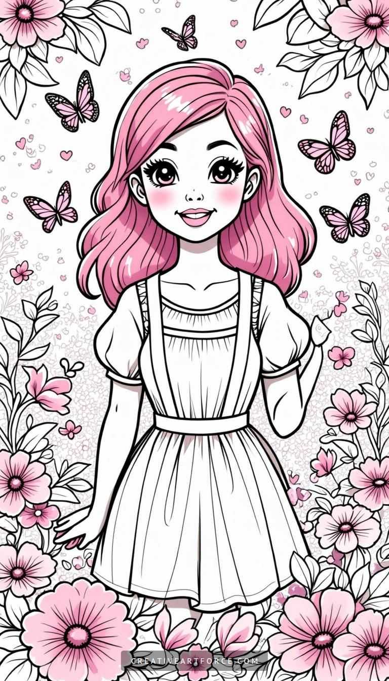 When coloring an image of Amy surrounded by colorful flowers and butterflies, think about how her pink hue represents love and joy, while the vibrant greens and soft pastels signify growth and beauty. As you engage with this delightful activity, consider what Amy represents—friendship, adventure, and positivity—and let that inform your color choices. Admiring her joyful presence allows the intricate details of your coloring experience to resonate even deeper.