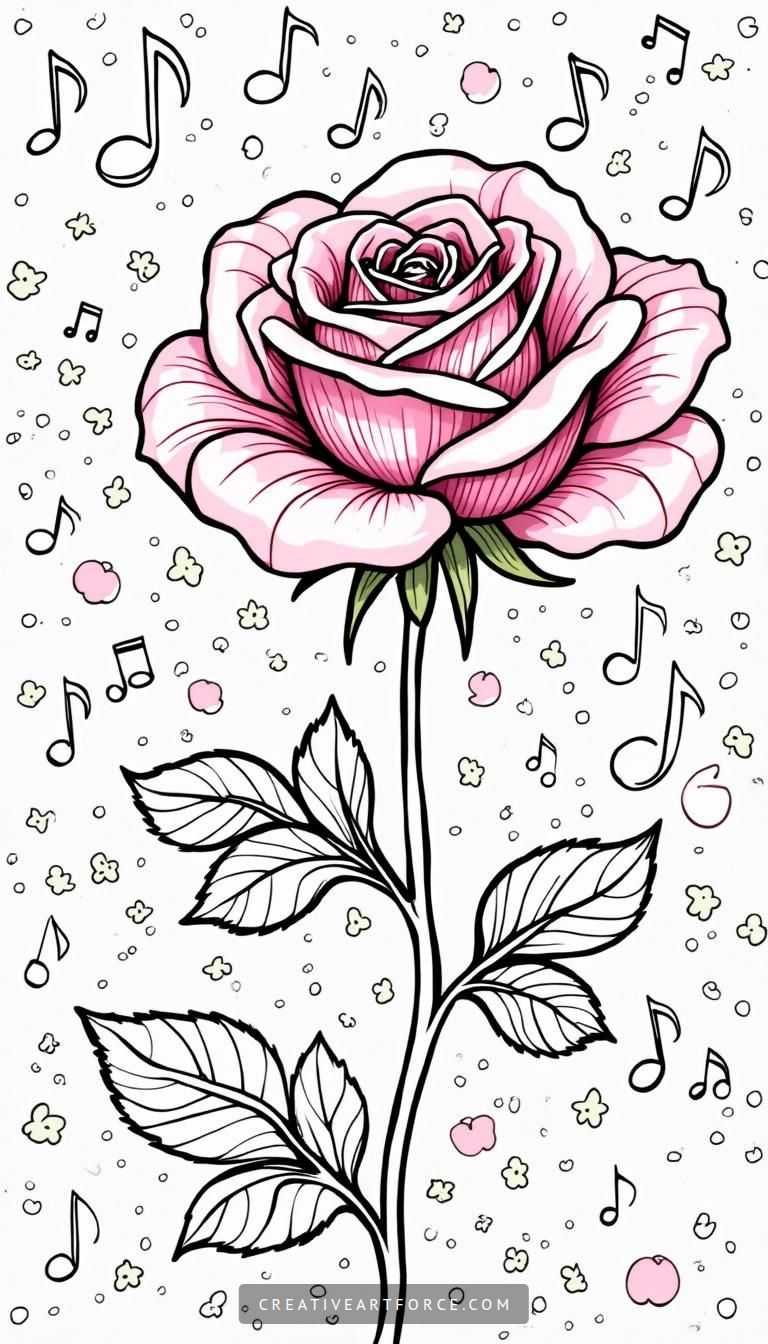 One of the most intriguing aspects of the rose and musical notes coloring page is its fashion-forward flair. As you fill in the blossoms with shades of pink and hints of , consider incorporating elements inspired by current fashion trends. Think of patterns or textures found in clothing, like floral prints and fabric textures, as inspiration for your coloring choices.