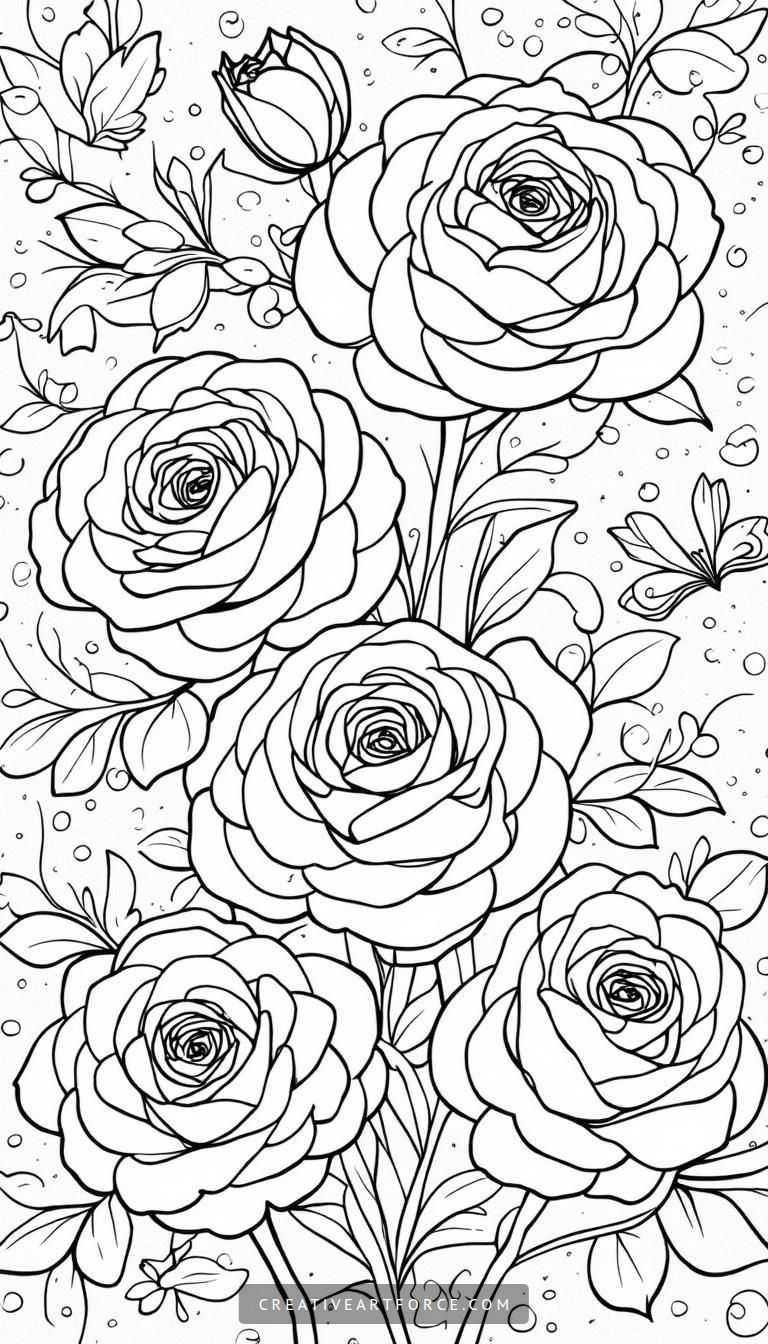 Additionally, when combined with delicate butterflies, these designs gain an added layer of charm. Butterflies fluttering among the roses can represent transformation and beauty, making every coloring session feel magical and inviting.