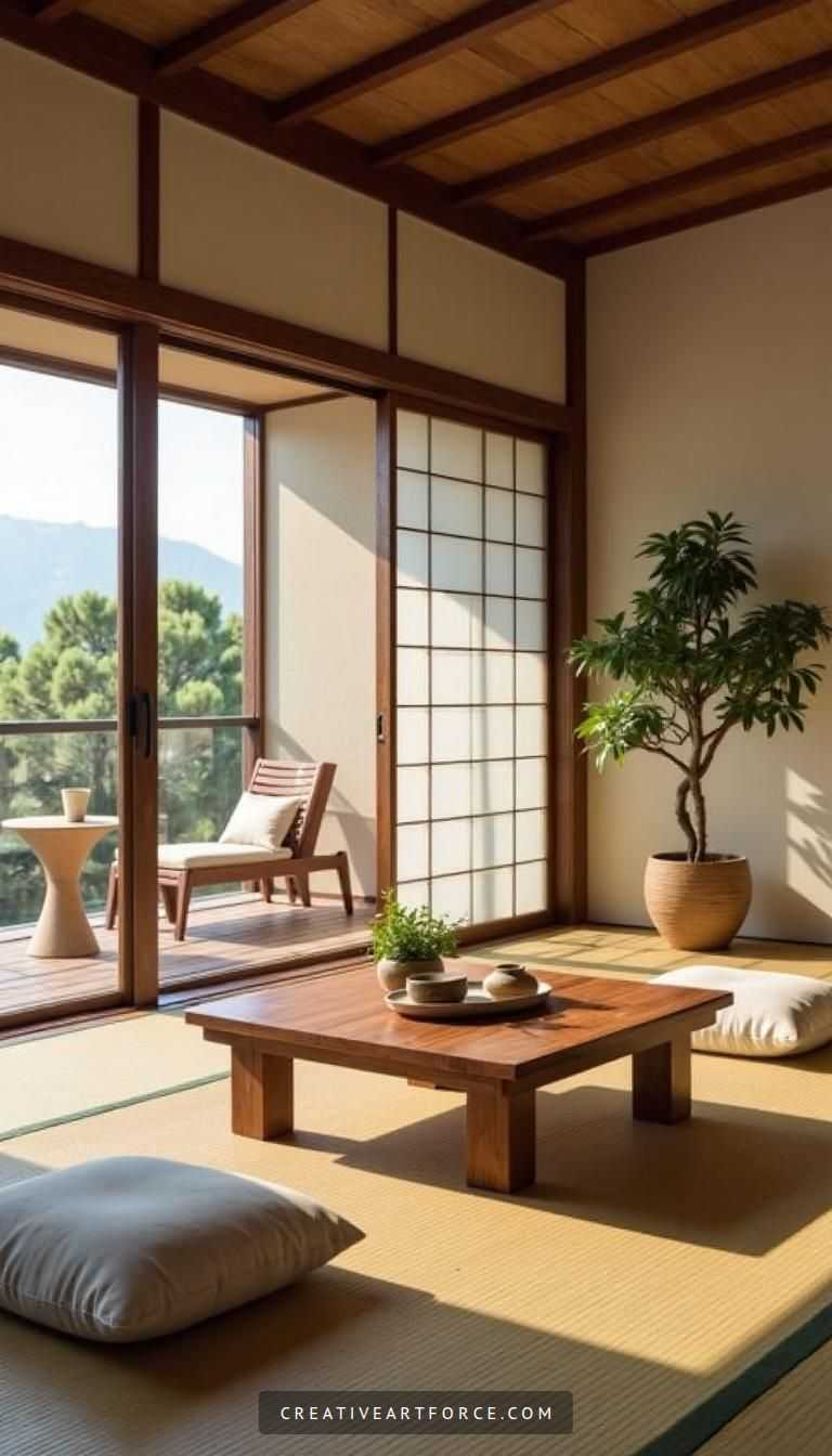 Create a Serene Japanese Living Room with Tatami Mats and Bonsai Elegance