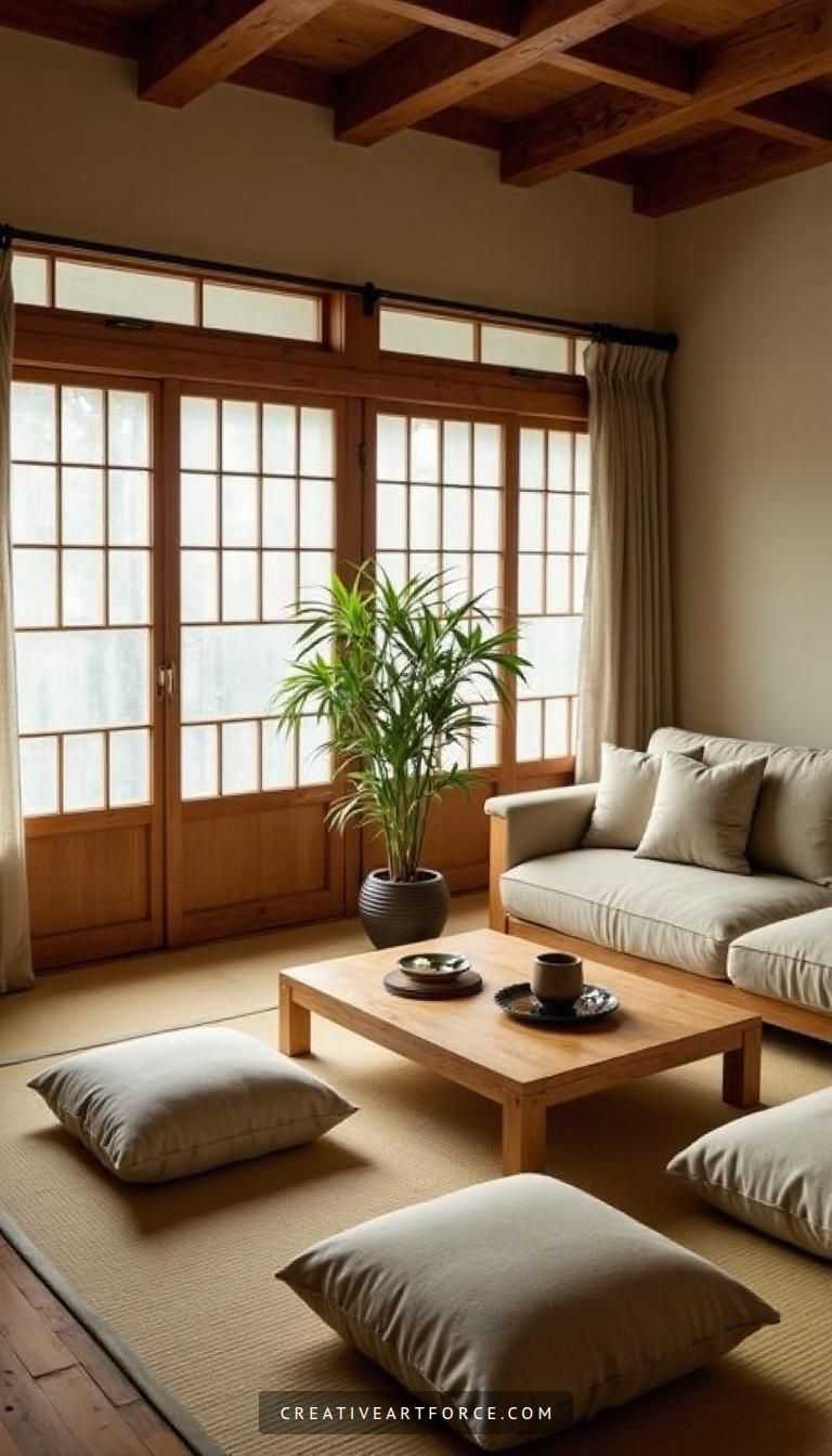 Create a Tranquil Japanese Living Room with Shoji Screens and Natural Elements