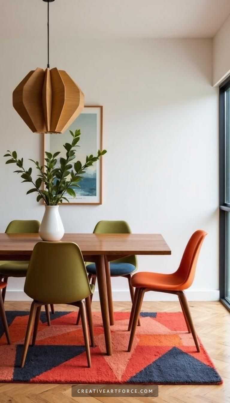 Transform Your Dining Space with Mid Century Modern Charm and Colorful Accents