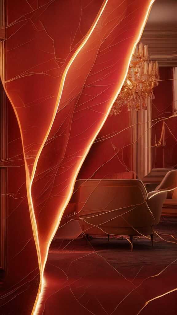 One of the easiest ways to incorporate red golden marble wallpaper into your home is by creating a striking accent wall. This approach not only draws attention but also adds depth to the room.